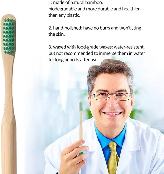 【 High-Quality Materials】 Crafted from premium quality bamboo, our toothbrushes are durable, sustainable, and an ideal choice for those looking to reduce their plastic consumption.