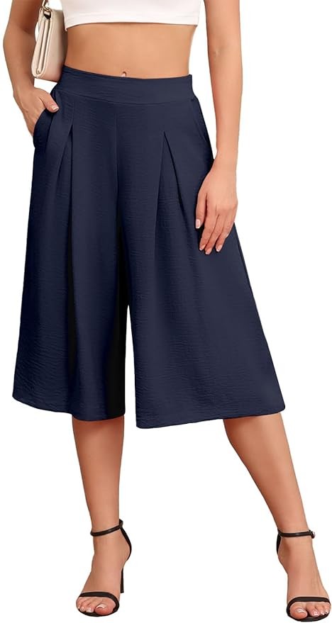【Features】Discover effortless style and comfort with our Our wide leg capri pants for women unique design Elastic comfortable elastic for all-day wear. The pockets of the pants for women are practical and cute, Can liberate your hands, whether you're running, going to the beach, or just hanging out with friends.