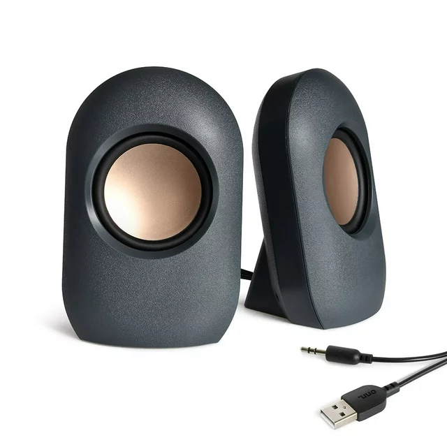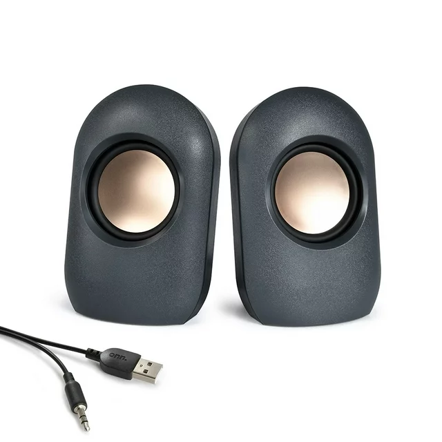 onn. Stereo Speaker with Volume Controls, 3.6 ft 3.5mm Aux with USB Power Cable