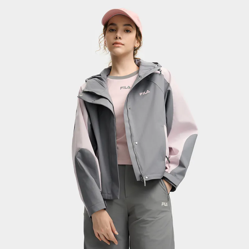 - The popular gray and pink color combination is combined with a retro sports jacket, which is retro and fashionable without losing the modern fashion sense. The short design is versatile and energetic.