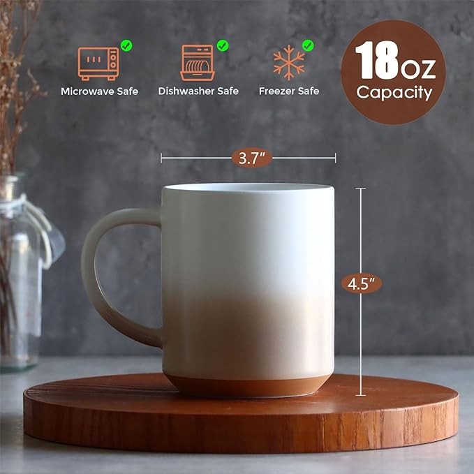 EASY TO HOLD - The handle is wide and thick enough to be large, and the rounded design allows you to hold the coffee mug very comfortably. The matte texture feels fine in your hand.